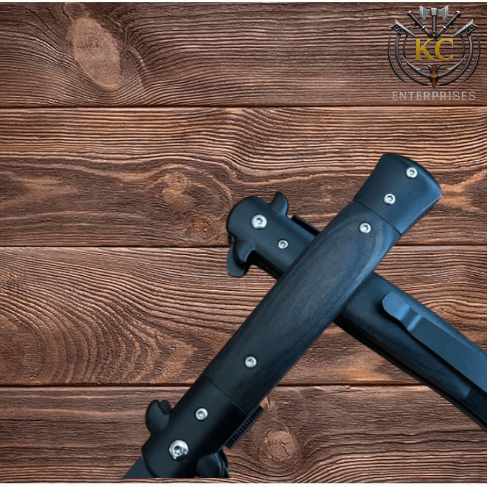 9” Black & Black Wood Italian Milano Stiletto Spring Assisted Folding Pocket Knife. Survival9” Black & Black Wood Italian Milano Stiletto Spring Assisted Folding Pocket Knife. Survival
