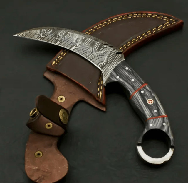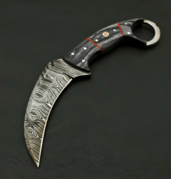 AE#1 Custom Hand Forged Damascus Steel Camping Hunting Full Tang Karambit Knife.