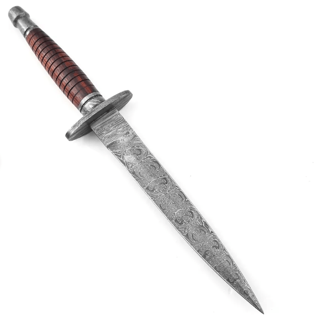 Hand Forged Damascus Steel Dagger Hunting Knife – Leather Stacked Handle