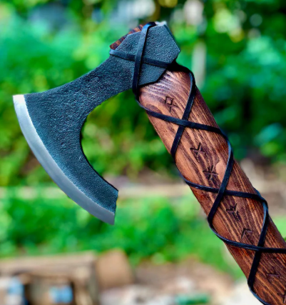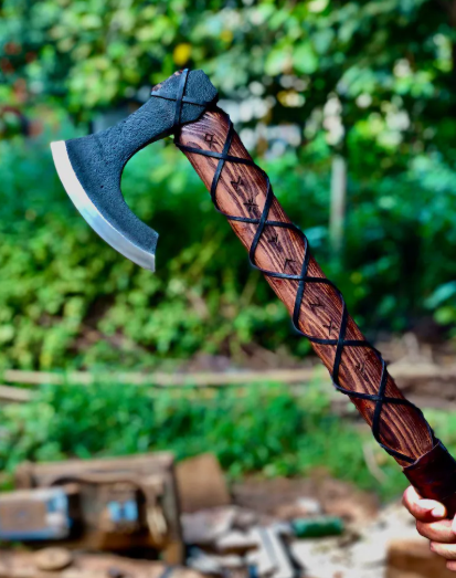 This Handmade and artistically designed High Carbon Steel Viking-themed Axes could be a fun and functional toll for Axe Lovers, So please use it with massive care !