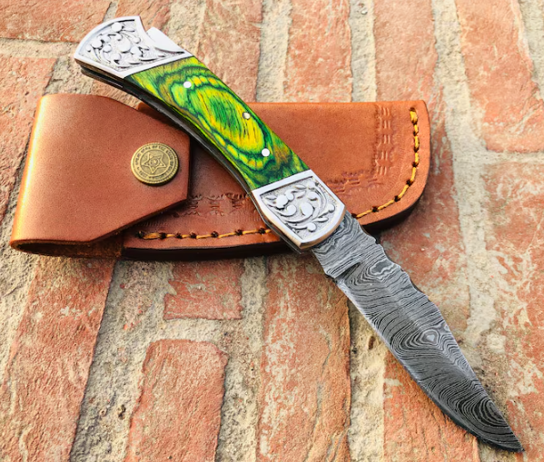 Damascus Folding Knife Handmade Damascus Steel Folding Knive Pocket Knife for Men Women Groomsmen Gift Camping Knife Gift for Him/Her Beautiful Gift for your love ones