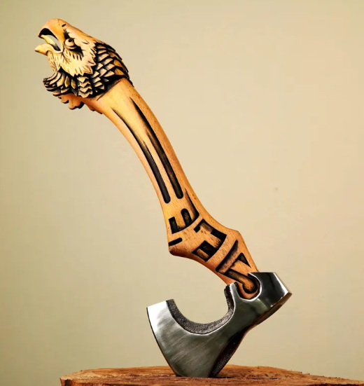 Hand-Carved Eagle Axe: High-Carbon Steel Blade, Tribal Etched Handle