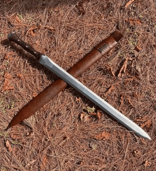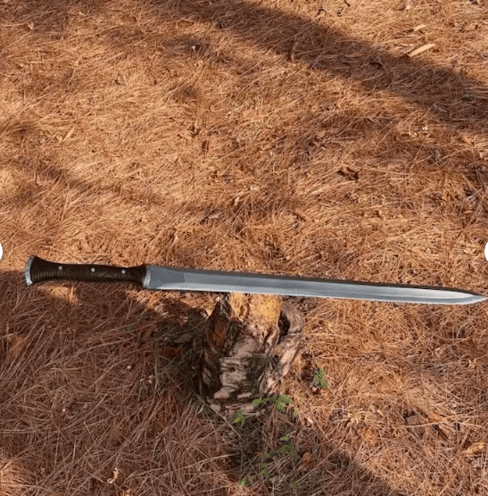 Crafted from high-quality carbon steel (truck spring), this sword is water-tempered for durability and precision. The versatile design allows for one-handed or two-handed use, making it a reliable choice for hunting, camping, and brush cutting.