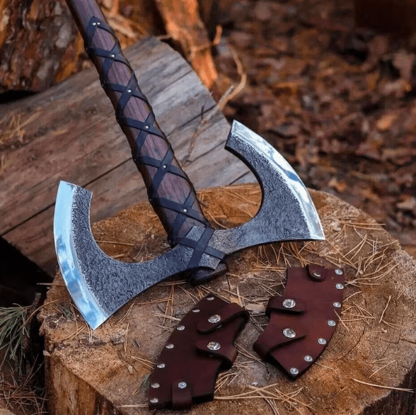 Be the first to review “Hand Forged Double Head Viking Axe Handmade Carbon Steel Camping Hatchet With Leather Sheath”