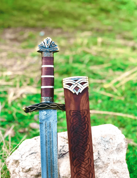 The 8-inch handle ensures a secure and comfortable grip, while the handcrafted rosewood scabbard allows you to safely store and transport your prized possession. Whether displayed, used for cosplay, or treasured as a collectible, this sword captures the timeless spirit of Viking craftsmanship.