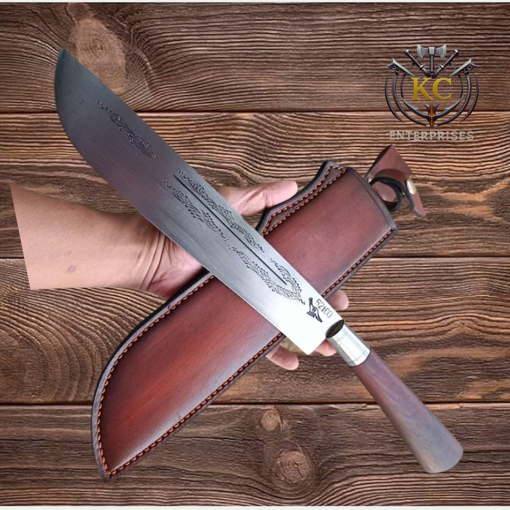 Handcrafted Outdoor Machete with Wooden Handle & Leather SheathHandcrafted Outdoor Machete with Wooden Handle & Leather Sheath