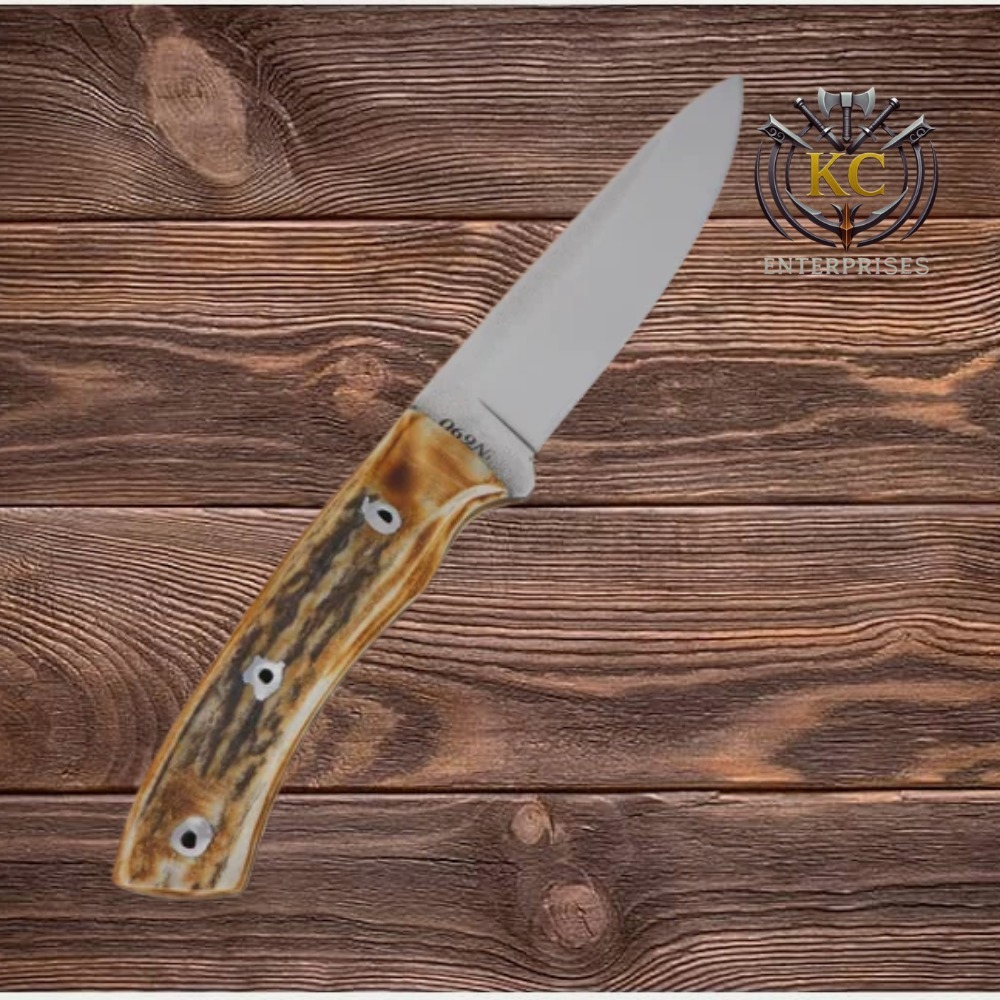 The handle is made from natural stag horn, giving the knife a traditional and rugged appearance while providing a comfortable and secure grip. Its ergonomic design helps reduce hand fatigue and ensures better control during extended use.