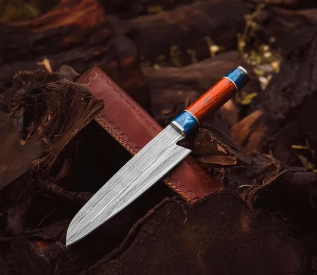Hand-Forged Damascus Steel Chef Knife, Handmade Kitchen Knives.