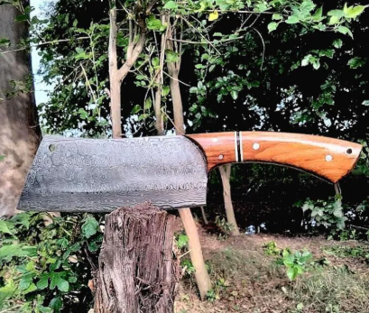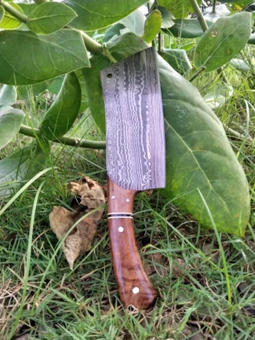 This Handmade Damascus Steel Cleaver Knife is crafted with a 7-inch razor-sharp blade and a 5-inch exotic wooden handle.
