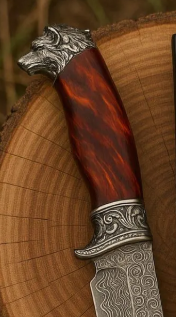 Handle Material: Exotic polished wood with stainless steel wolf head pommel