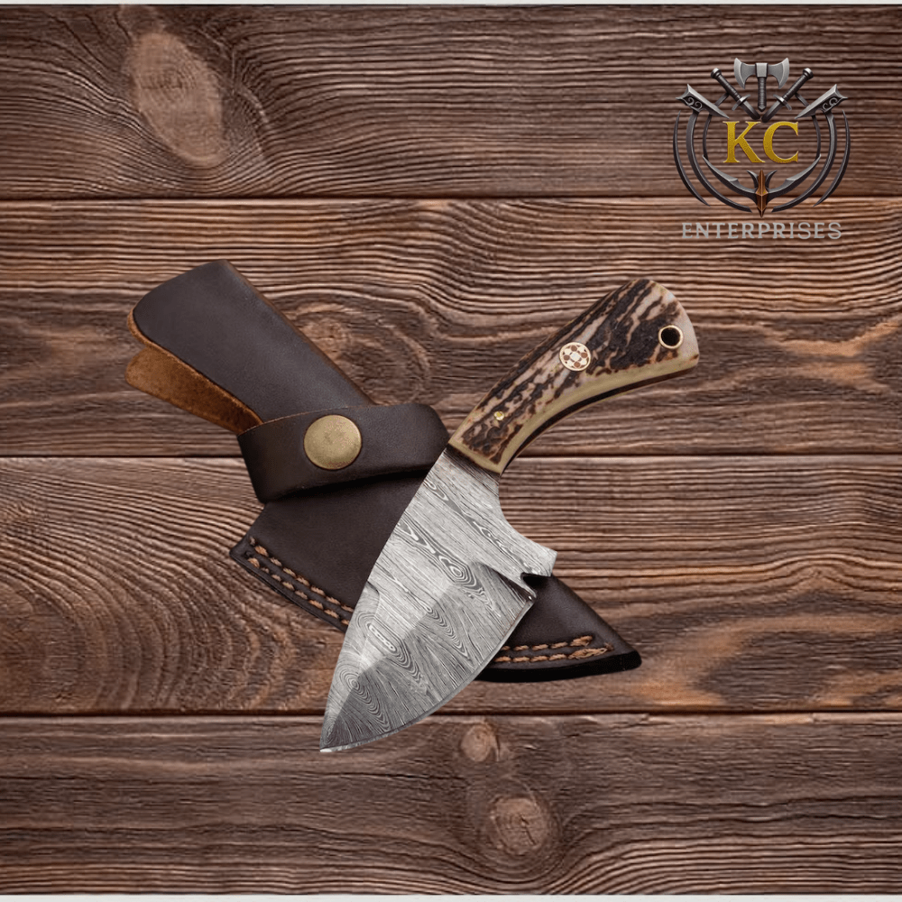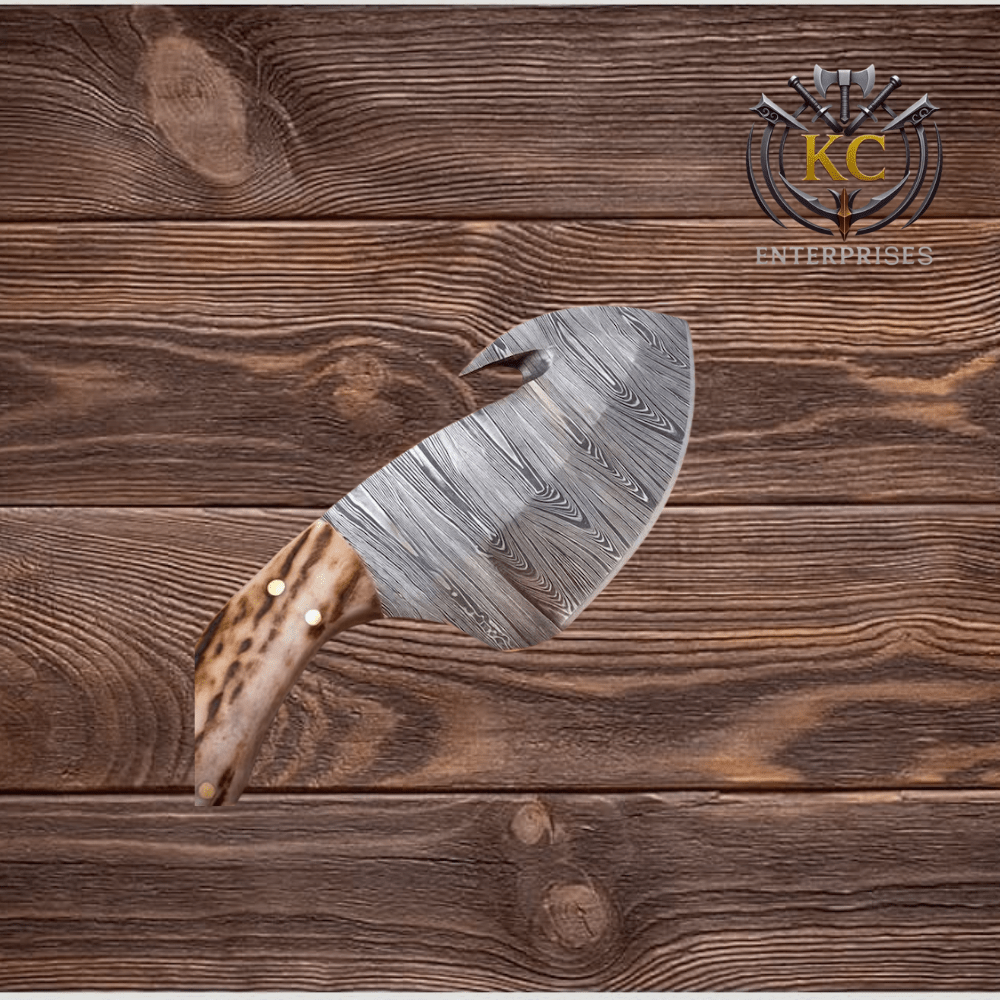 The blade is forged from high-quality Damascus steel, known for its exceptional strength, sharp edge retention, and distinctive flowing patterns. Each blade features unique Damascus layering, making every knife truly one of a kind. Its compact yet powerful shape makes it ideal for hunting, skinning, camping, and everyday outdoor tasks.