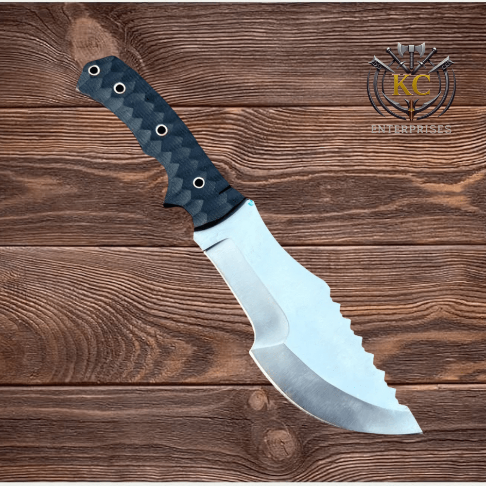 - Tracker/belly blade; aggressive sawback spine; satin flats