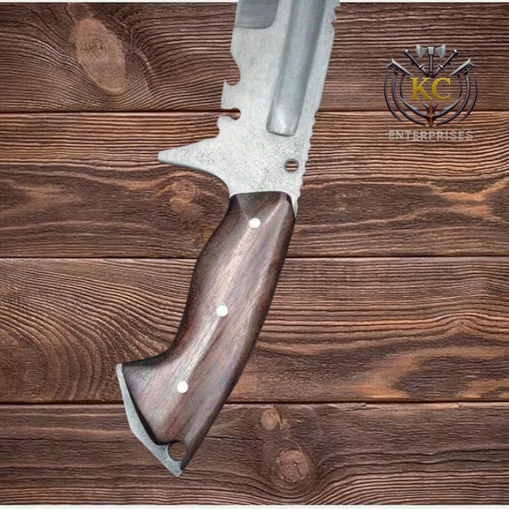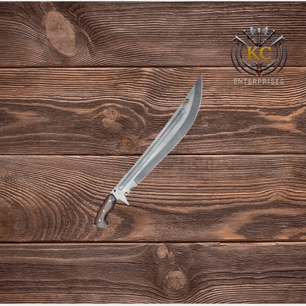 The blade’s unique design includes a deep fuller for improved balance and reduced weight, allowing for efficient swings while maintaining strong cutting power. The serrated spine adds extra functionality, making it useful for cutting rope, branches, and tough materials in survival situations.