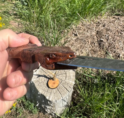 Slither is a beautifully handmade Damascus dagger by author and artist John Olsen. This one-of-a-kind 12″ dagger is perfect for anyone and makes a great Father’s Day present.